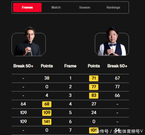 此役,张安达携上一轮横扫沃拉斯顿时的火爆气象,一开局就给了这位7届世锦赛冠军一个下马威,他在前三局打出三杆50+,很快就得到3-0的跳跃上风。在奥沙利文将比分追成3-3之后,张安达打出单杆54分,4-3赢得赛点。